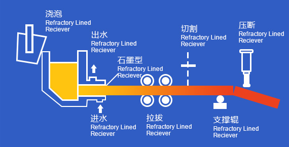 水平連鑄鑄鐵型材的制造方法是將嚴格選擇的原輔料經沖天爐或感應爐熔化處理后的鐵水,倒入保濕爐內,鐵水流入安裝在保溫爐下方的冷水石墨結晶器中,凝固成一定強度的外殼,被牽引機拉拔成型材。保溫爐內的熔融鐵水,在牽引機拉拔的同時,又不斷地補充到結晶器內冷卻凝固,形成一個動態(tài)的大冒口補縮小鑄件的工藝模式,保證了所產棒坯致密,無內部缺陷。不同形狀的結晶器和不同的生產工藝,可以生產不同截面,不同材質的鑄型材。